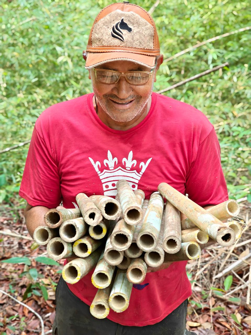 A minha história com o artesanato começou por volta de 2010, quando eu estava na sala de espera de um consultório dentista, observei sobre a mesa que havia um vaso muito lindo, onde imaginei como ele ficaria feito de bambu, aguçando minha curiosidade e minha imaginação. O que também me influenciou muito foi uma pequena decoração simples de bambu, que foi deixada no sítio onde eu trabalhava. Aquilo me fez querer aperfeiçoá-la ou mudar seu formato. Meus colegas tentaram refazê-la, mas não conseguiram. Quando tentei, logo consegui.